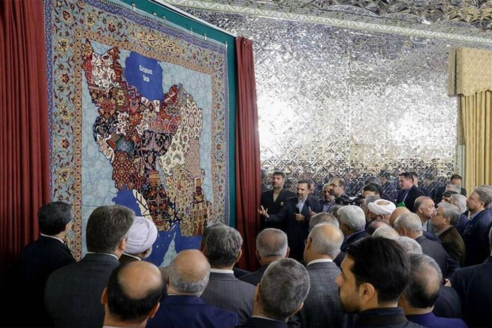 وی ادامه داد: علاوهبر طرح و نقشههایی که بطن نقشه ایران را شکل دادهاند، گرداگرد نقشه را نیز مجموعهای از اسلیمیها و ختاییها پر کردهاند که، شاخصترین عناصر طراحی ایرانی و اسلامی هستند.