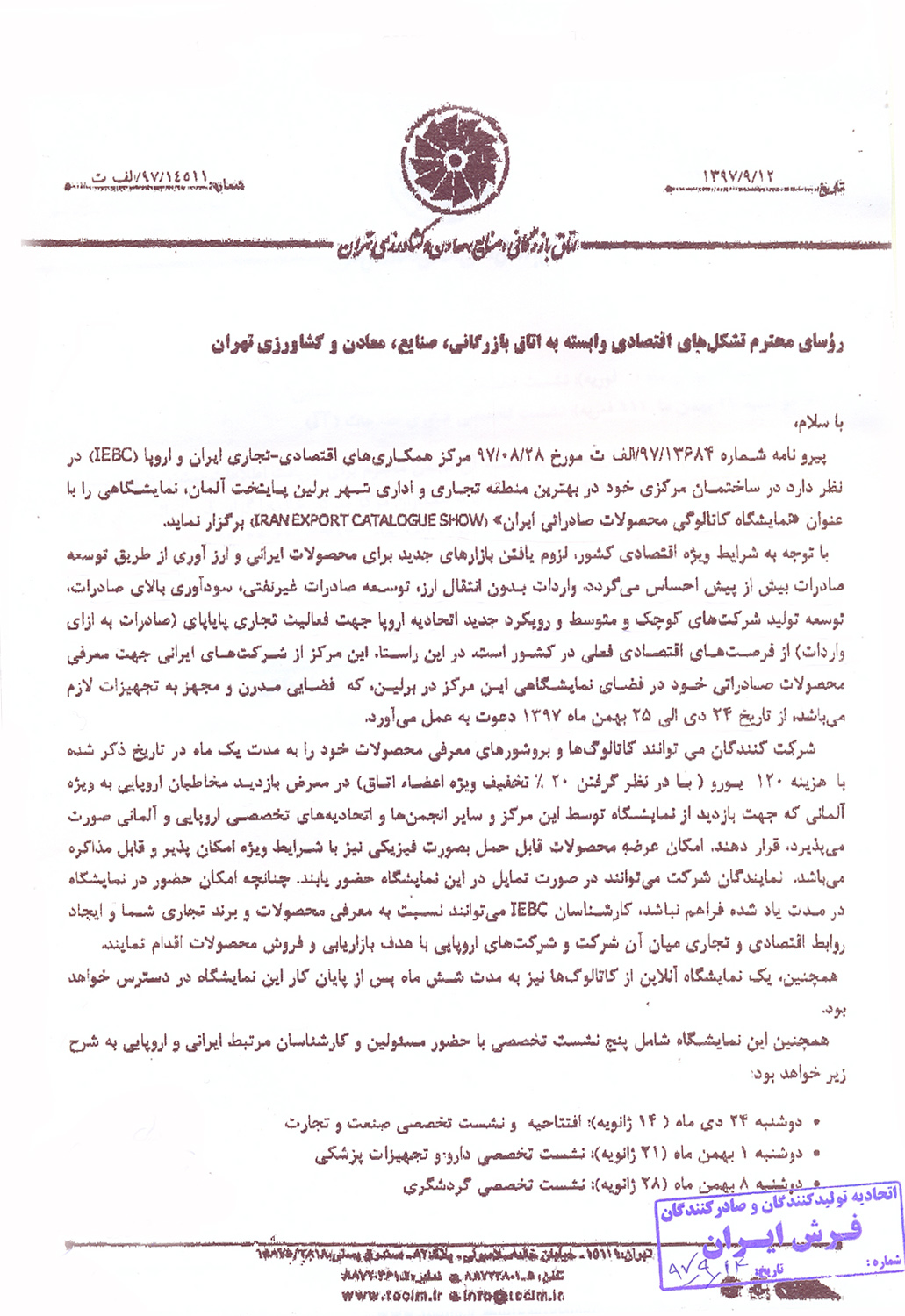 برگزاری نمایشگاه کاتالوگی محصولات صادراتی ایران در برلین